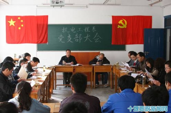新闻网讯(实习记者 谈乾昱)“喜迎十八大、争创新业绩”。11月6日,正值十八大即将召开之际,机电工程系以此为主题的党支部大会在6207教室隆重召开。会议由机电工程系党总支书记张艳良主持,系主任李军及全系党员、预备党员和拟发展对象参加了大会。