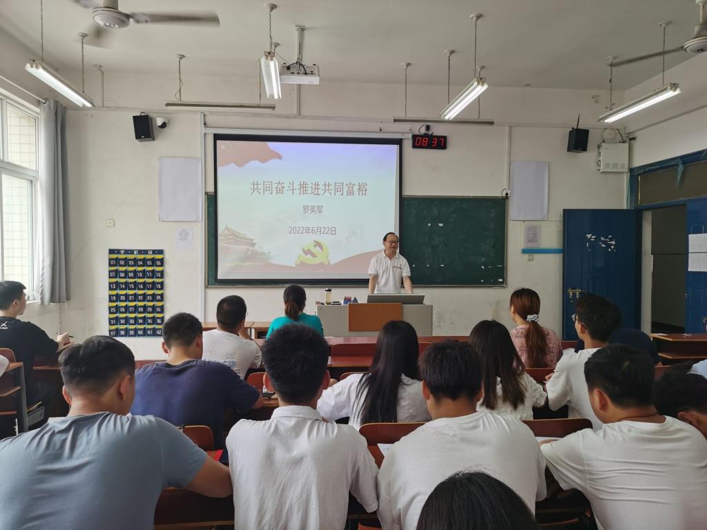 活动开始,李智勇通报了党员到会情况和党费交纳情况。随后由党员老师为新发展党员佩戴党徽颁发党章,并由李智勇带领新党员进行入党宣誓。罗英军以《共同奋斗 推进共同富裕》为题讲党课,深刻阐述了共同富裕的基本内涵,共同富裕实现途径,共同富裕实践探索,共同富裕与习近平经济思想,新时代推进共同富裕的重大历史意义,并结合高质量职业教育推进共同富裕做了讲解。希望大家牢记党员身份,履行使命当担,在今后的工作岗位中弘扬工匠精神,将个人理想融入国家发展大局,在推进共同富裕中贡献出自己的力量。