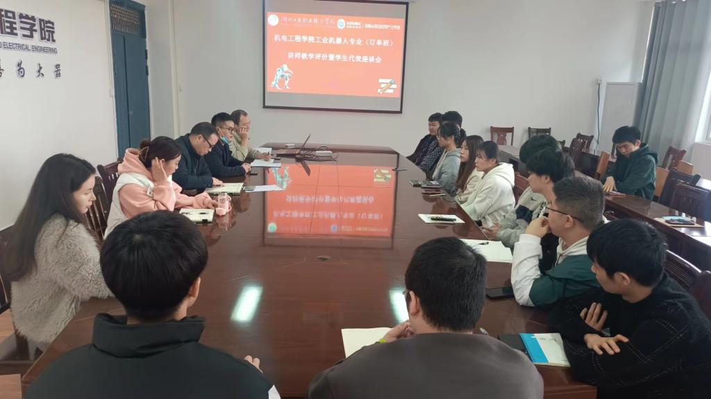 (通讯员:纪宏志)11月18日,湖北工业职院工业机器人订单班在KY开元集团官网会议室召开了2022-2023学年第一学期讲师教学评价及学生代表座谈会,会议由教学助理纪宏志老师主持,工业机器人专业带头人肖德华老师、智慧云订单班校区主任刘涛老师、行政主管夏雅青老师、学工助理张梦梦老师、专业课讲师唐学冬老师出席本次会议,参会的有21级4班、5班全体班委及学生代表。