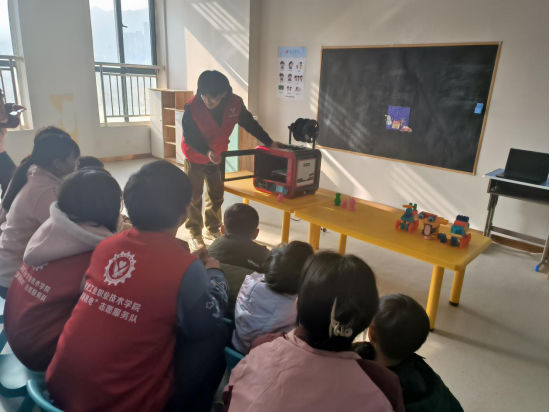 同学们来到辖区内的康音特殊儿童学校,为“来自星星的孩子们”开展团体辅导活动,向孩子们展示3D打印技术,并打印出富有创意又有用电安全知识的小玩具送给他们。志愿者们还利用机械玩具开展遥控编程知识普及活动,他们与孩子们一起玩耍、做游戏,与他们细心交流,关心询问他们的学习、生活和健康情况,让小朋友们感受到了爱和陪伴,活动室里不时传出孩子们的笑声。