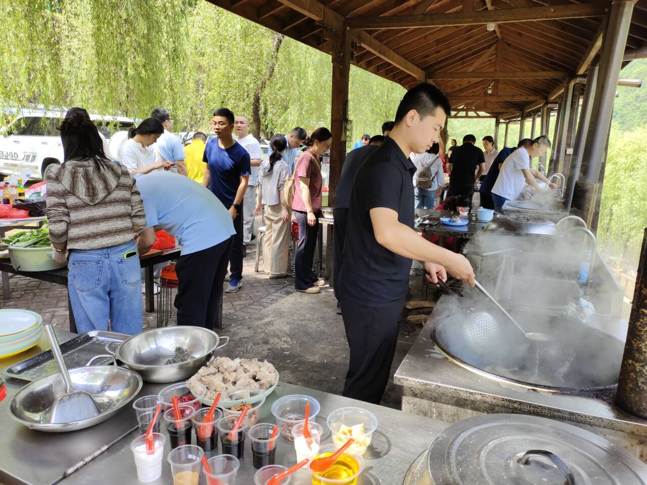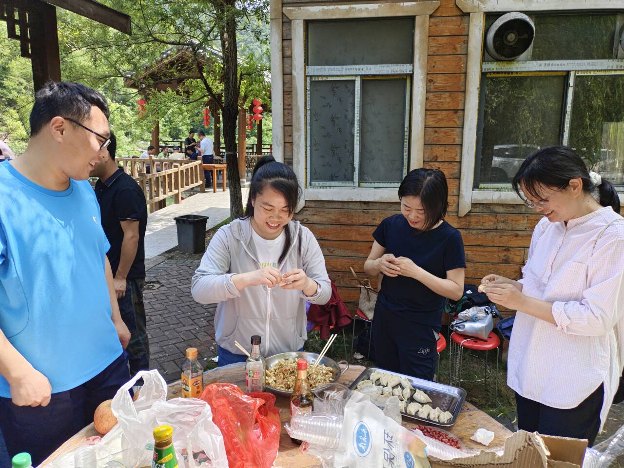 活动期间,老师们用提前准备的食材在土灶台上自己动手制作美食,大家分工协作,各司其职,活动现场气氛热烈,欢声笑语不断,做好后,大家围坐在一起,津津有味地品尝着亲手做出的美食,分享生活,交流工作,其乐融融。