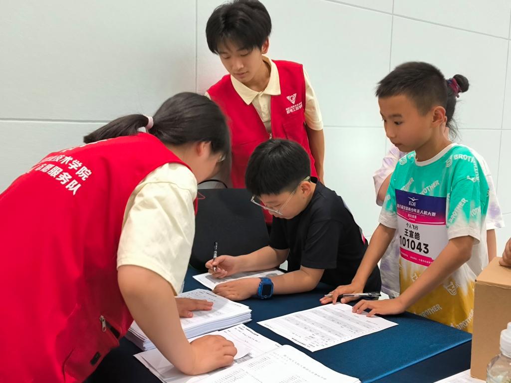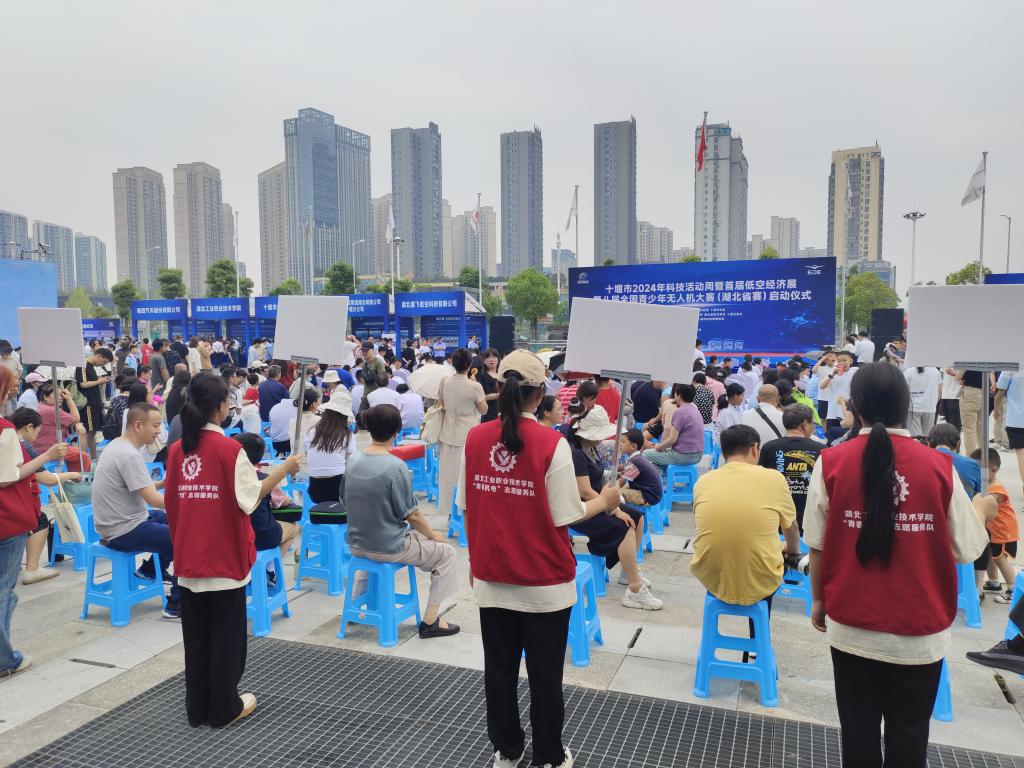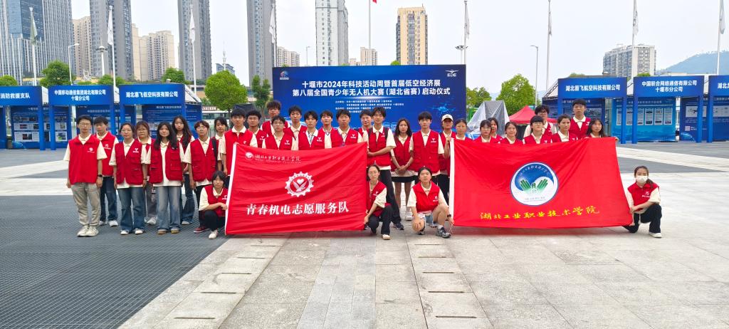 (文/华善银,图/志愿者)5月25日,十堰北广场成为了科技与激情的交汇点,第八届全国青少年无人机大赛(湖北省赛)在这里隆重举行。本次大赛不仅吸引了众多无人机爱好者的目光,更有一群默默奉献的身影——来自湖北工业职业技术学院“青春机电”志愿服务队的46名学生志愿者,他们用自己的热情和专业为比赛的顺利进行提供了坚实保障。
