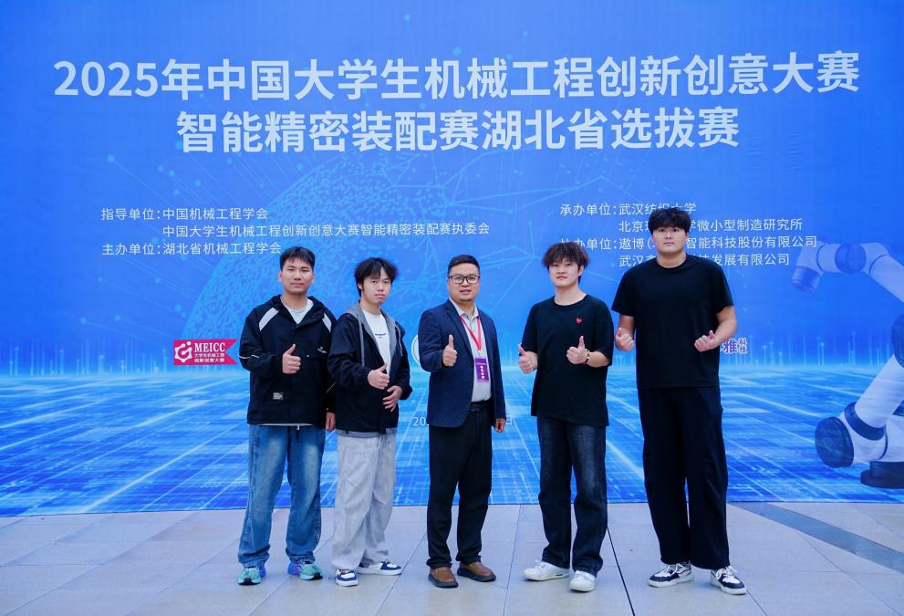 近日,2025年中国大学生机械工程创新创意大赛智能精密装配赛湖北省选拔赛在武汉纺织大学落幕。由开元官网KY开元集团官网肖德华、陶华伟老师指导,工业机器人技术专业朱瀚林等4 名同学组成的团队,在全省57所高校近百支队伍角逐中脱颖而出,获高职高专组省级一等奖,并获全国总决赛推荐资格。