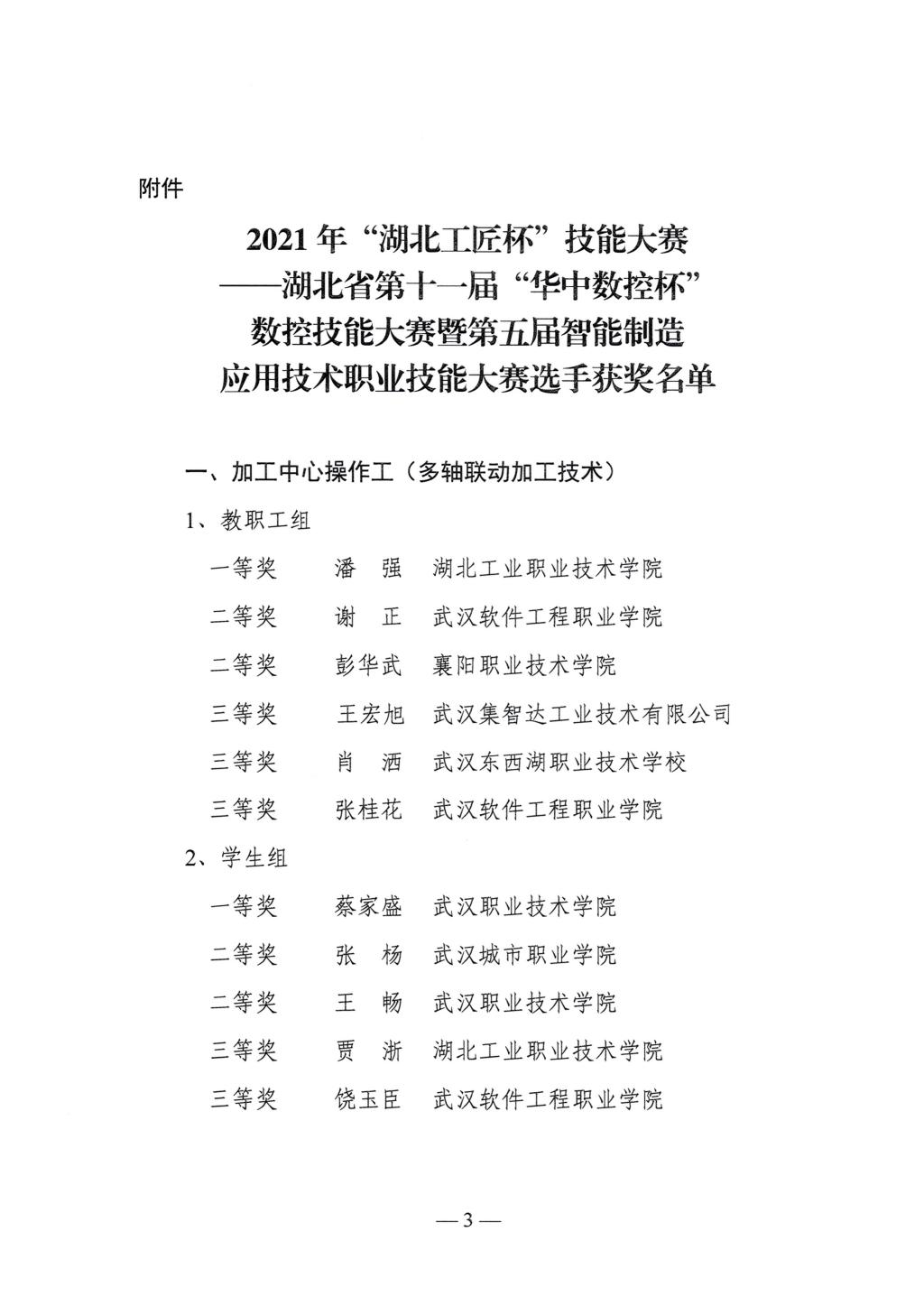 新闻网讯(通讯员薛嘉鑫)2021年“湖北工匠杯”技能大赛——湖北省第十一届“华中数控杯”数控技能大赛暨第五届智能制造应用技术职业技能大赛加工中心操作工(多轴联动加工技术)竞赛,开元官网KY开元集团官网副院长、副教授潘强同志荣获该赛项教职工组第一名并被授予“湖北省技术能手”称号,学生贾浙荣获学生组第四名。