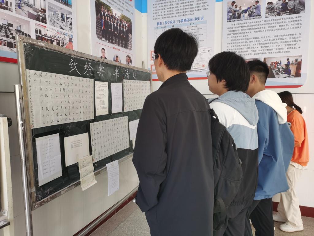 为激发同学们对古诗词和语言文字的热爱,学院在清明节期间开展了“致经典书清明”书法作品征集活动,并将征集到的50余副书法作品择优进行展示,学生作品内容积极向上,既书写了新时代的精神风貌,又把对先烈的缅怀和对亲人的思念寄托于笔尖。