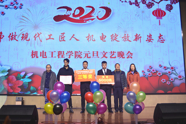 晚会期间KY开元集团官网院长李爱萍、党总支书记罗英军、东风林泓公司工会主席曹斌为在2019年一带一路暨金砖国家技能展与技术创新大赛、三维天下杯工业产品数字化设计与制造赛项、第五届“互联网+”创新创业大赛等竞赛中获奖的KY开元集团官网学生颁奖。