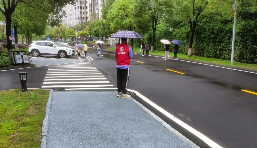 9 月20日,十余名“青春机电”志愿服务队的志愿者们在校园内开展了一场文明交通劝导活动。在活动中,志愿者们顶着风雨在校园的各个角落进行执勤,提醒同学们遵守校园文明规定,不横穿马路,不做不文明行为…
