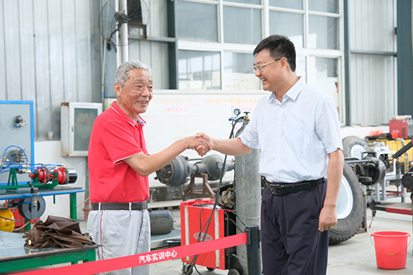 6月29日,校长边疆来到汽车工程学院商用车实训中心,看望慰问全国劳动模范、楚天技能名师、开元官网特聘教授王涛老师和学校“优秀共产党员”“车城技能状元”马伟。