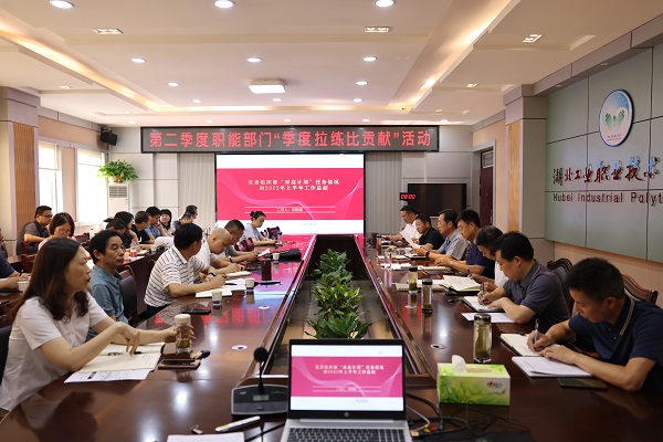新闻网讯(文/瞿万军 图/熊超)为营造学校各部门比学赶超的浓厚氛围,激发推动学校发展的强劲动力,加速推进学校重点任务和项目建设,7月18日上午,学校举行省级双高校、提质培优项目建设推进会暨第二季度职能部门“拉练比贡献”活动。校领导魏文芳、边疆、肖海华、毛义忠、郑强、胡昌龙、陈穗川、李辉,双高及提质培优项目负责人、各二级学院院长和书记参加了活动。会议由副校长郑强主持。