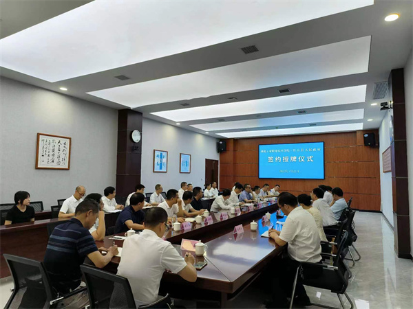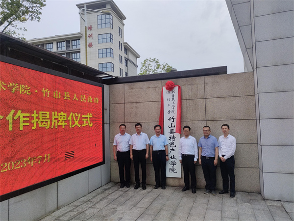 新闻网讯(卢波 邓欣怡)7月21日,湖北工业职业技术学院与竹山县举行校县合作签约仪式。竹山县委书记陈建平,县委常委、宣传部长任卓,县领导贺云松,校党委书记魏文芳、校长边疆、副校长郑强出席签约仪式,并共同为湖北工业职业技术学院竹山县特色产业学院揭牌。