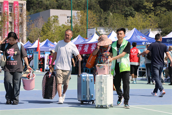 “校园设施很好,风景很漂亮、师生很热情……”刚刚办理完入学手续的新生家长陈先生一边送孩子前往宿舍,一边向身旁的送行家属说道。