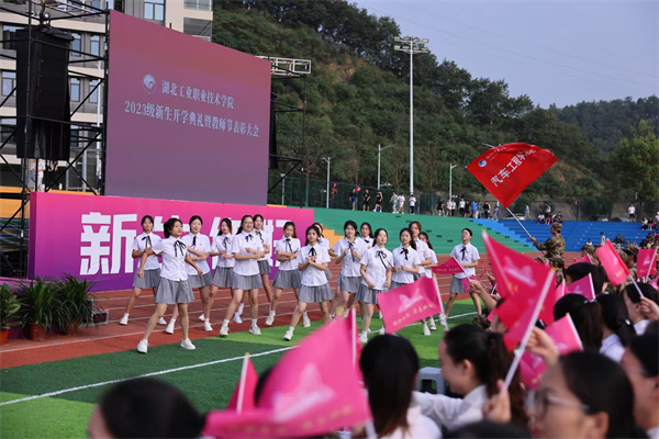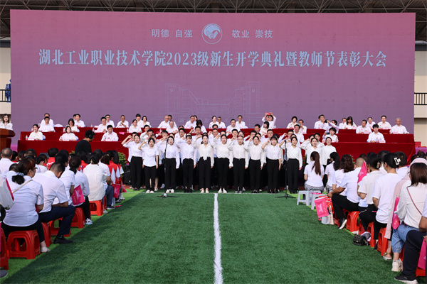 “我们走在大路上,意气风发斗志昂扬……向前进向前进,朝着胜利的方向”,在师生合唱的《我们都是追梦人》歌曲声中,湖北工业职院2023年秋季新生开学典礼暨教师节表彰大会圆满结束。