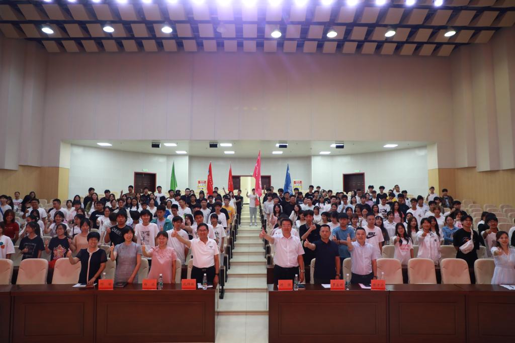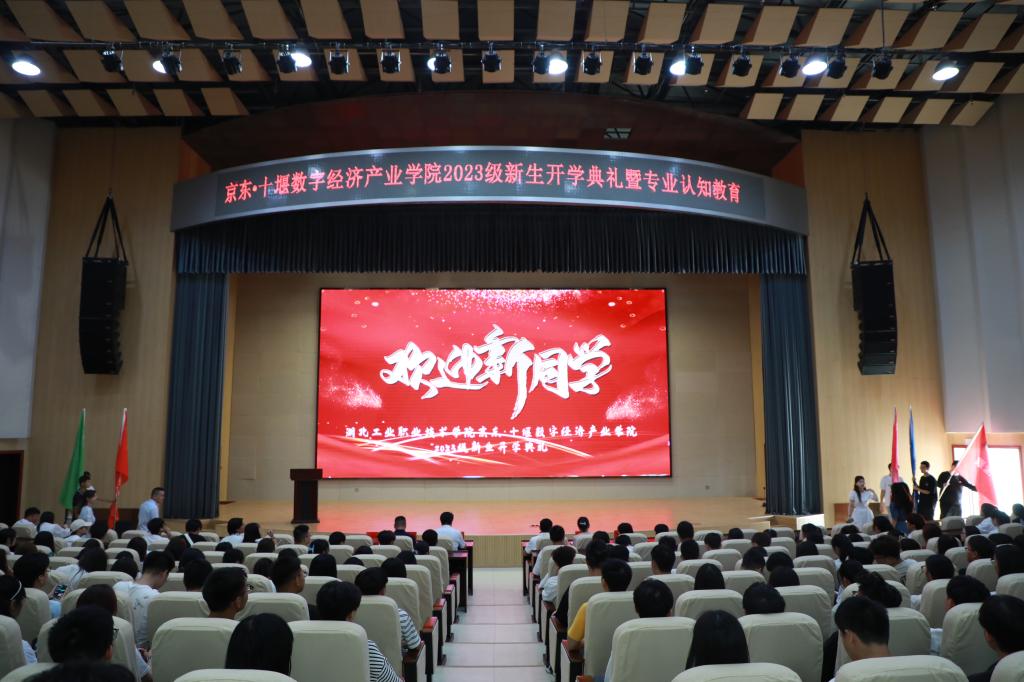 新闻网讯(文/杨莹 杨波 图/夏喻 陈滋潮)伴着新的希望,开启新的征程。9月6日上午,京东▪十堰数字经济产业学院2023级新生开学典礼在会议中心举行。校党委委员、副校长郑强,旅游商贸学院、京东十堰数字经济产业学院负责人、教师代表以及产业学院全体新生共同参加开学典礼。