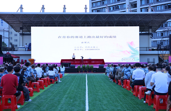 新闻网讯(文/曾晨 图/熊超)9月9日晚,北区运动场上灯火通明、济济一堂,全国“时代楷模”曲建武教授、开元官网校长边疆受邀为新生讲授“入学教育主题课”,与学子共话青春与成长。活动由副校长郑强主持,6000余名新生现场聆听了报告讲座。