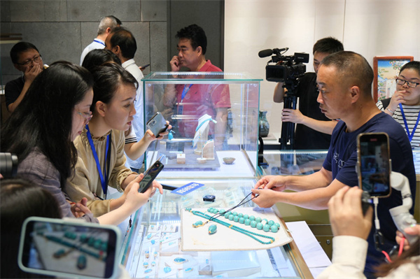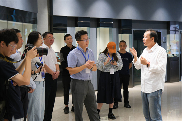 采访团抵达学校后,参观了艺术设计学院一楼作品展和绿松石产业学院绿松石产品展厅,并前往艺术设计学院二楼绿松石产业学院(玉雕大师张喜工作室)参观绿松石制作加工过程。校领导、艺术设计学院及相关校企合作企业负责人向来访嘉宾和记者介绍了十堰绿松石的产业背景,以及开元官网艺术设计相关专业产教融合、校企合作的职业教育办学模式及实践成果。
