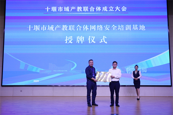 十堰市域产教联合体成立大会现场还进行了签约和授牌仪式。湖北汽车工业学院与湖北恒晟液压股份有限公司签订了校企合作协议,湖北汉江技师学院、十堰高级职业学校与东风小康汽车股份有限公司签订了校企合作协议。湖北工业职业技术学院与东风悦享科技有限公司签订了校企合作协议,深圳开源网络安全技术有限公司为湖北工业职业技术学院网安培训基地授牌。