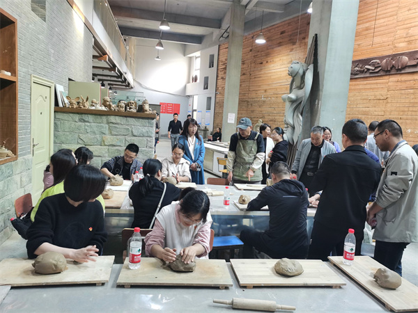 活动开始,十堰市委党校第二、第三党支部和湖北工业职业技术学院艺术设计学院教工支部全体党员在艺术楼召开10月份主题党日活动,完成理论学习。随后,全体人员兴致盎然地走访了校园,艺术设计学院院长胡盛骑向现场老师介绍了艺术设计学院发展情况。最后,老师们分两组进行了漆艺体验、陶艺作品制作,感受中国传统文化魅力。