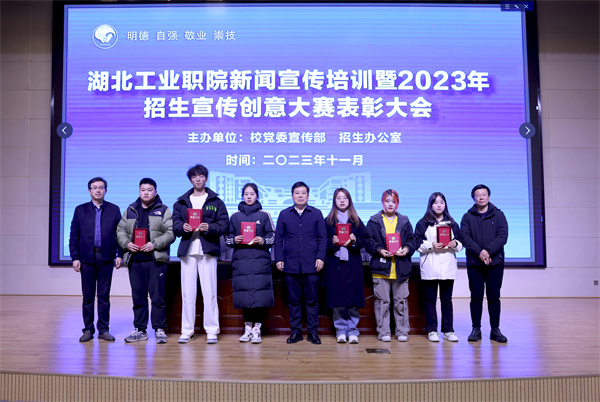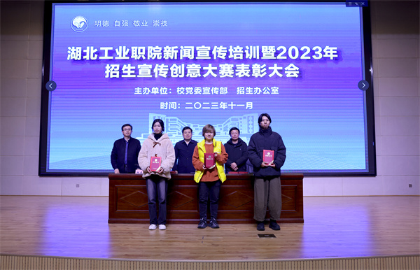 会上,对湖北工业职业技术学院2023年招生宣传创意大赛获奖作品进行了展播,与会领导和老师为获奖师生颁奖。
