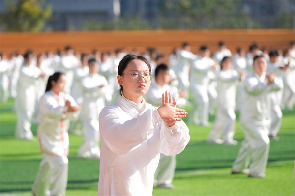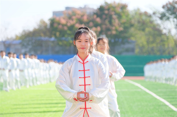 新闻网讯(文/韩子轩 图/刘轶凡 陈滋潮 曾刚)11月18日上午10点,十堰市第七届运动会大学生组武当太极拳九势比赛在开元官网北区田径场正式开赛,组委会派出两位竞赛监督、七位专业裁判员莅临现场评分,来自开元官网建筑工程学院、KY开元集团官网、旅游商贸学院大一年级的千名学子参加比赛。