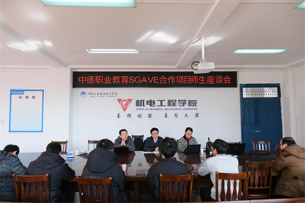 副校长郑强从学校的发展历程、近年来取得的成绩、学生规模、实习就业、本地化发展及学校发展的思路和理念等方面向评审专家作了介绍。机电工程院相关负责人汇报了工业机器人专业的基础建设、师资队伍、实训条件、项目的预期及保障措施等内容。项目组评估专家对项目的评估原则、评估目的以及评估流程作了详细介绍。双方就培养理念、搭建职业教育框架、有效促进职业教育全面发展的途径、育人方式、实施环节情况等问题进行了深入的交流与探讨。