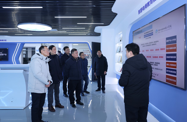 双方围绕服务地方产业发展、产业学院建设机制、企业深度参与、中职办学、资金项目等情况进行了深入交流。在校领导的陪同下,沈剑光一行参观了校内京东数字经济产业学院和绿松石产业学院,考察了智慧环保产业学院和丹江特色产业学院。