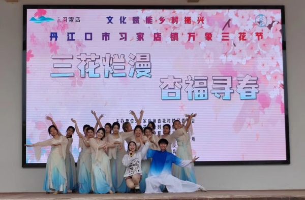 新闻网讯(通讯员 王哲 马超)3月16日上午,丹江口市习家店镇举办了一场精彩纷呈的文化盛宴——“万象三花节”,开元官网近六十名师生以独唱、笛子、舞蹈等多种形式的节目参演开幕式文艺演出,以春日烂漫的美景为背景,将艺术与文化融入了乡村振兴的征程中。