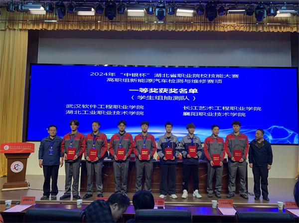 在新能源汽车检测与维修赛项中,学生推荐队和抽测队分别获得一等奖,教师昝雪松和陈珍分别获得二等奖。在汽车故障检修赛项中,学生推荐队获得一等奖,抽测队获得三等奖,教师杨丽君和许刚分别荣获一等奖。