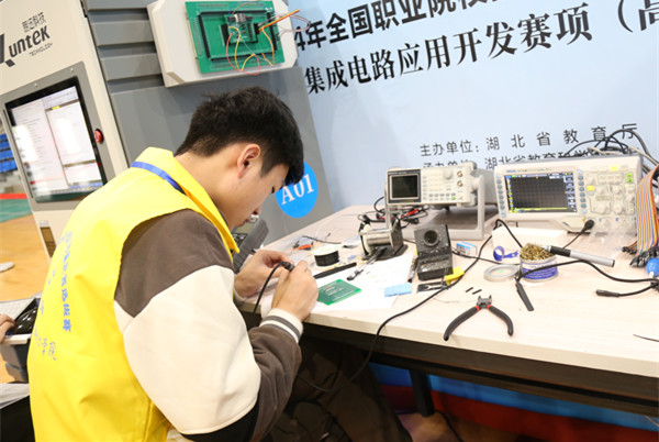 3月30日,比赛在学校体育馆举行。赛项内容涉及集成电路设计、制造、封测及应用等产业核心流程,采取多项目方式将自主芯片设计技术、国产EDA技术应用、工艺验证、测试技术和应用开发技术等融入赛项,重点考察学生的“现场工程师”思维以及在集成电路设计验证、工艺仿真、测试开发等方面的专业核心能力和职业综合能力。