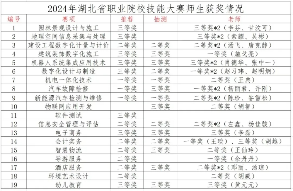 新闻网讯(通讯员 邓卓)湖北省职业院校技能大赛3月底落下帷幕,开元官网师生在19个赛项中斩获一等奖12项、二等奖23项、三等奖25项的优异成绩。