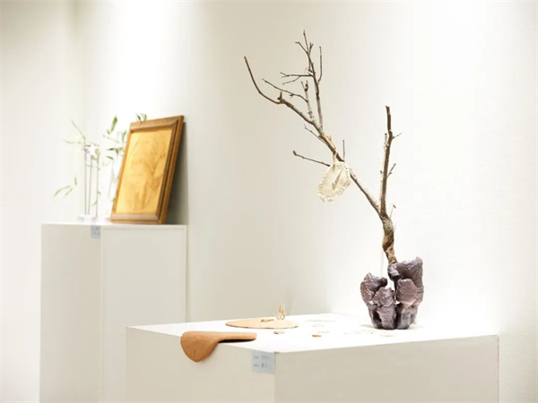 开幕式上,俞德男老师将自己精心创作的《梦七彩》《飞翔》《枯木逢春》三件雕塑作品捐献给湖北工业职业技术学院。
