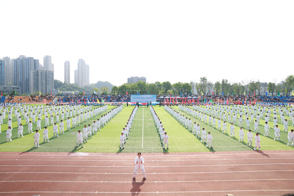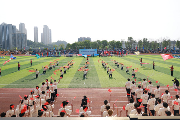 迎着火热的朝阳,随着激昂的旋律,裁判员、青年志愿者及各学院代表队的方阵依次入场。彩旗飘展、华彩绽放,一场视听盛宴随之拉开序幕。《爱的华尔兹》双人舞、《九州同》扇舞,学生动作优雅、舞姿曼妙,让师生久久沉浸其中;《舞动青春》《动感“101”》《冠军》等热歌劲舞,涵盖了爵士、hiphop等舞种,燃爆全场、掌声雷鸣;在《创世黄龙》方阵展演中,学生手持条条“龙”飞舞在空中,上下起伏、左右翻滚,展现着彩带龙的轻柔之美;《威武霸气汽车人》融合了战术、倒功、拳术和赛车表演,在彩色摄影烟雾弹下上演燃爆“大片”。在压轴节目中,350名学生带来“九式武当太极”表演,120名学生共同演绎了《未来有你》健美操团队表演,将活动氛围推向了高潮。