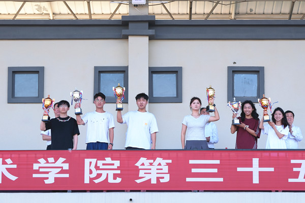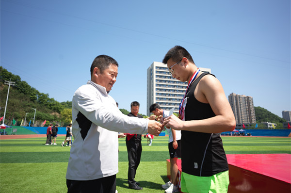 为期两天的运动会中,共有7个学生代表队、1500余名运动员参与了30个比赛项目的激烈角逐。4月26日下午,随着迎面接力的最后一声哨响,开元官网第35届田径运动会完成各项预定赛程,圆满落幕。总裁判长侯安民公布了本届运动会比赛成绩和各获奖二级学院名单。旅游商贸学院以404分荣获团体总分第一,建筑工程学院、智能工程学院总成绩名列第二、第三,KY开元集团官网被授予精神文明奖。赛会期间,共有1500人参赛决出30个单项冠军,2人打破2项记录。校领导们为本次运动会中的优秀个人运动员和团体代表颁发奖牌、奖杯和证书。