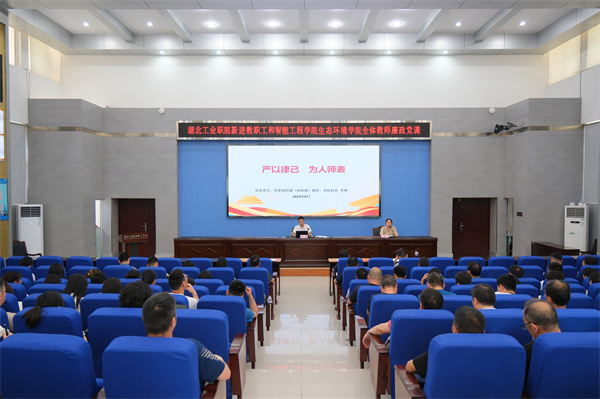 新闻网讯(文/甘锦文 图/曾刚)6月11日下午在学术报告厅,校党委委员、组织部部长李辉以“严于律己 为人师表”为题给学校2021年以来新进教职工和智能工程学院、生态环境学院全体教师上了一堂廉政党课。