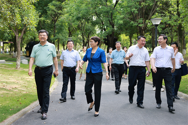 新闻网讯(文/孔鹏 图/熊超)6月11日下午,十堰市政府副市长朱云慧率市政府办、教育局、财政局、人社局、自建局、编办等部门负责同志来开元官网现场调研指导工作。校长边疆率副校长郑强、胡昌龙和有关部门负责人参加调研。