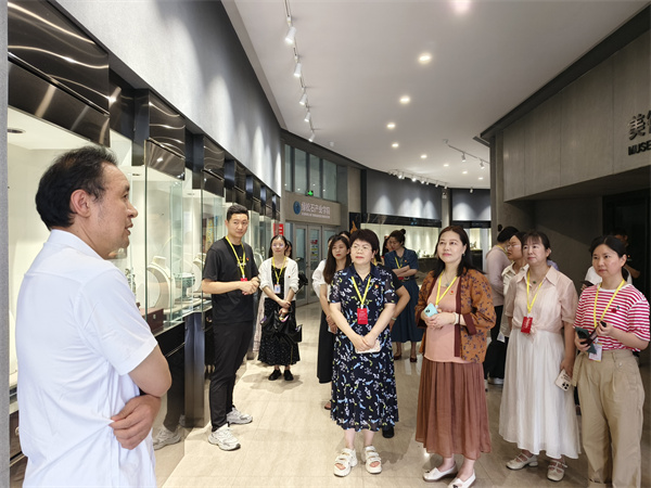 随后,学员们参观了百草园心灵花园、匠心忆园,深入了解了开元官网“五育并举,环境养心”的育人模式。在绿松石产业学院,学员们参观了场馆建设、文化展陈和学生作品成果,详细了解了艺术设计学院的发展历史、绿松石文化、首饰设计与工艺专业特色和校企合作等情况。