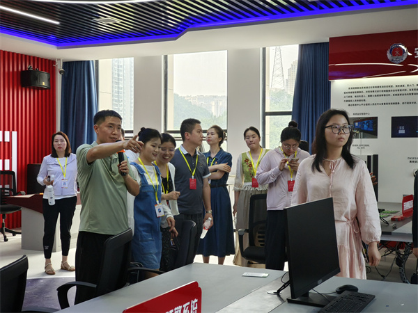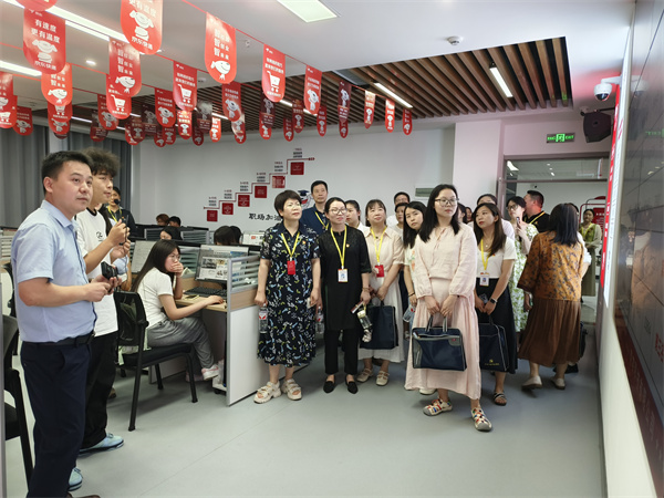 在产教融合大楼,学员们实地走访了虚拟仿真实训基地、京东十堰数字经济产业学院,详细了解了建筑消防技术、建筑工程技术、网络营销与直播电商、现代物流管理等专业建设情况。在智慧消防实训室,学员们现场体验了虚拟仿真灭火、建筑施工VR等活动;在网络营销实训教室,学员们推门听课,听取了学生的营销数据报告,观看了开元官网学生自导自演的网络营销短视频;在电商直播间,学员们观看了开元官网学生电商直播实况,部分学员在现场关注了直播间账号并下单购买商品。培训班学员对开元官网理实一体化的人才培养模式给予高度评价。