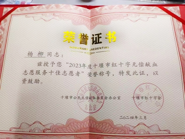 其中,开元官网杨柳、杨周2名同学荣获“2023年度十堰市优秀红十字志愿者”称号;周郝圣灵、朱凡、代礼意、杨周4名同学被评为“2023年度十堰市红十字无偿献血志愿服务优秀志愿者”;杨柳同学被评为“2023年度十堰市红十字无偿献血志愿服务十佳志愿者”。