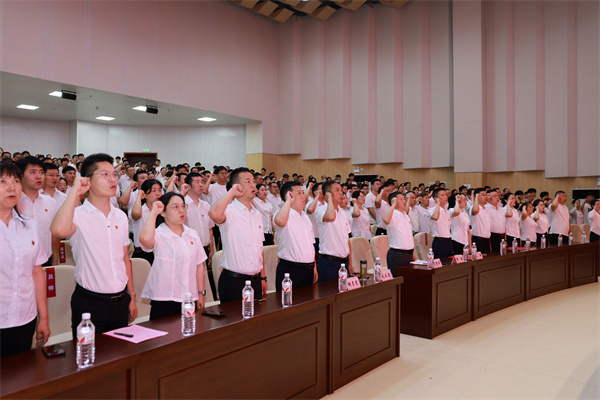 上午8:30,大会在雄壮的国歌声中拉开帷幕,全体党员面向党旗,庄严宣誓。表彰环节,校领导为受表彰的先进集体和个人颁发了奖牌、荣誉证书。