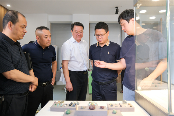 交流会上,副校长郑强通过“山、水、人、车、石、蛋”等多维度,介绍了十堰市的独特风情以及开元官网办学理念。罗勇介绍了此行的考察目的和重庆财经职业学院办学情况。交流会后,来访客人一行前往京东十堰数字经济产业学院、绿松石产业学院进行走访,考察开元官网产教融合办学情况。