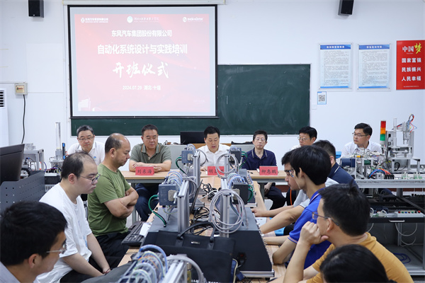 新闻网讯(文/黄锐 图/陶亿)7月29日,东风汽车集团有限公司自动化系统设计与实践培训班在开元官网6号教学楼实训教室举行开班仪式,来自东风公司各单位的技术骨干将在开元官网进行为期一周的培训。