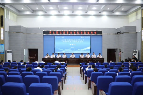 北京碧水源科技股份有限公司运营事业部副总经理李万意、运营部经理刘海园,泗洪久安水务有限公司总经理郭伟、十堰生态集团副总经理张群伟、湖北京源水务科技有限公司总经理杜纲及碧水源运营事业部58名化验员,开元官网副校长郑强及社会培训学院负责人、生态环境学院全体教师参加了开幕式。